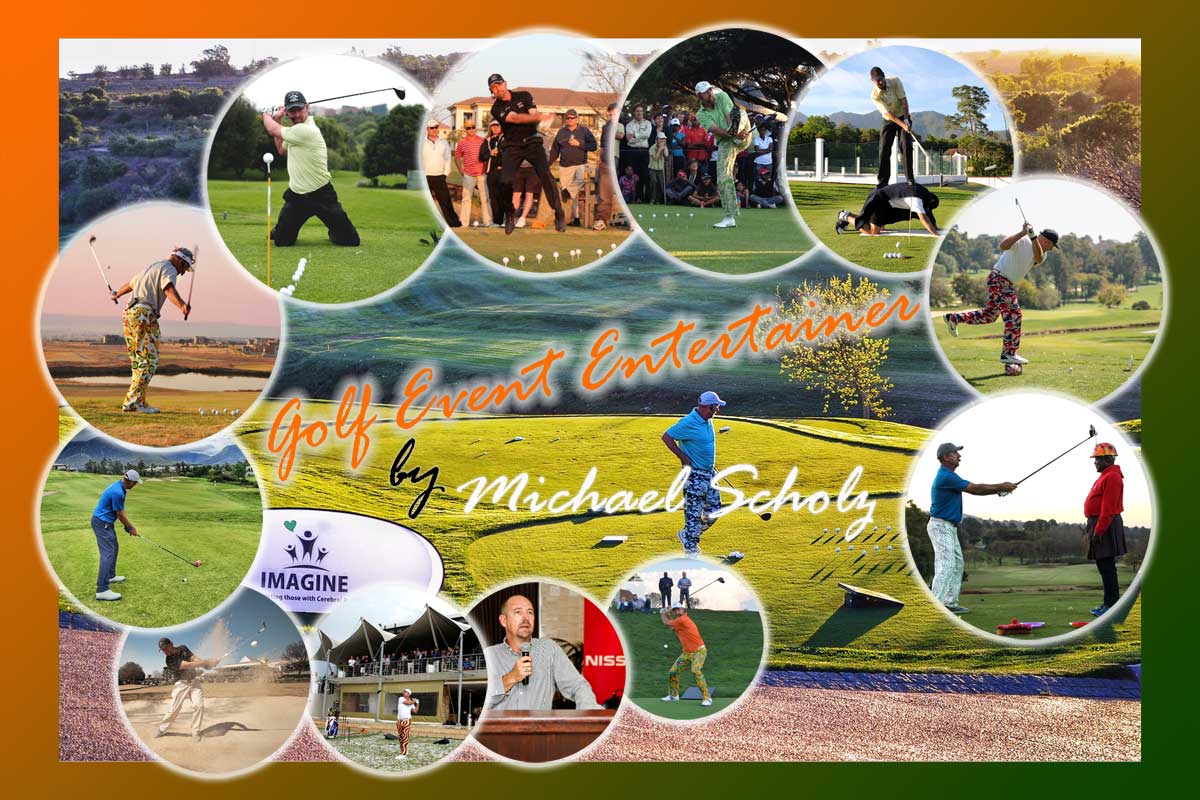 Enter the 40 Year-Old Rookie, Michael Scholz, to BAMBOOZLE your guests with a comedic and athletic display of golf shots and skits featuring many golfing icons and worldwide celebrities. This is the best golf day entertainment available!